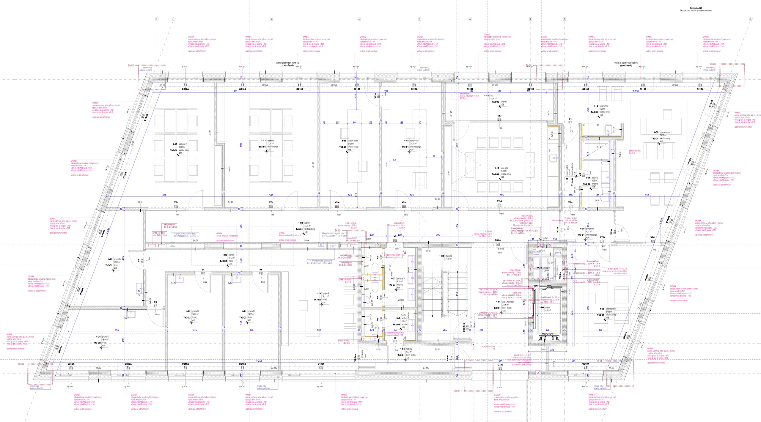 Stavba bo imela tri etaže. V na pol vkopani naravno osvetljeni kleti bo omogočena umestitev dejavnosti večjega merila, pritličje in nadstropje pa sta zasnovani za bolj običajne poslovne in storitvene dejavnosti. Vsako etažo pa bo možno razdeliti tudi na več samostojnih enot ali celo pisarn. Poleg skupnega sanitarnega jedra ob osrednjem stopnišču, bo v posameznih poslovnih enotah možno dodatno umestiti tudi individualne sanitarne enote, glede na zvrst in potrebe dejavnosti.